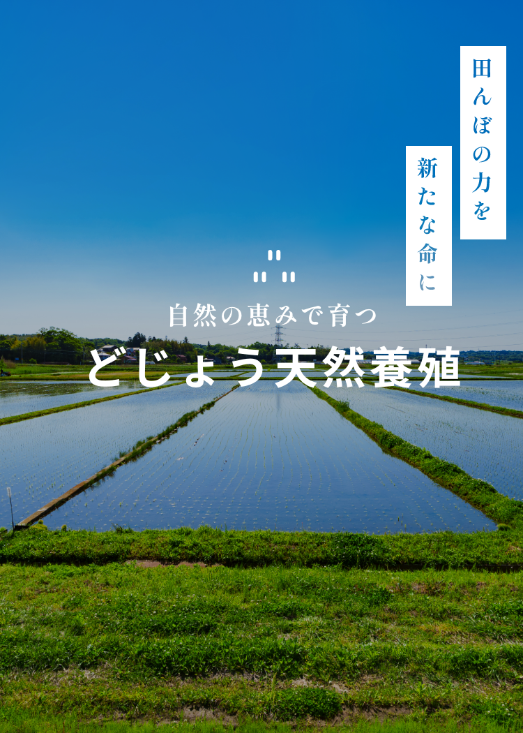 私たちは、休耕田を活用した持続可能などじょう養殖を通じて、日本の原風景を守りながら、